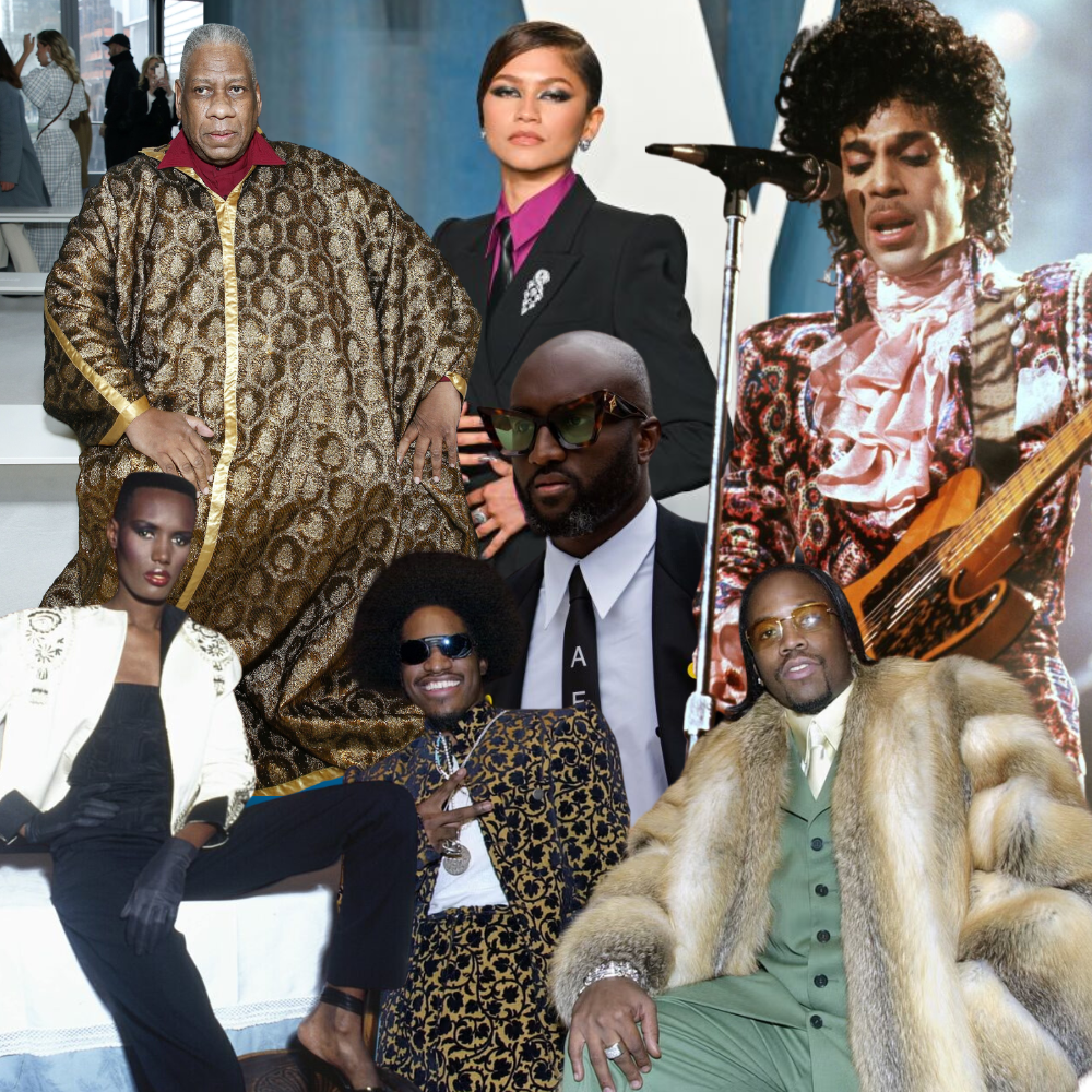 • Nod to historical Black figures in fashion—maybe a Josephine Baker-inspired silhouette or something referencing Duke Ellington’s stagewear.